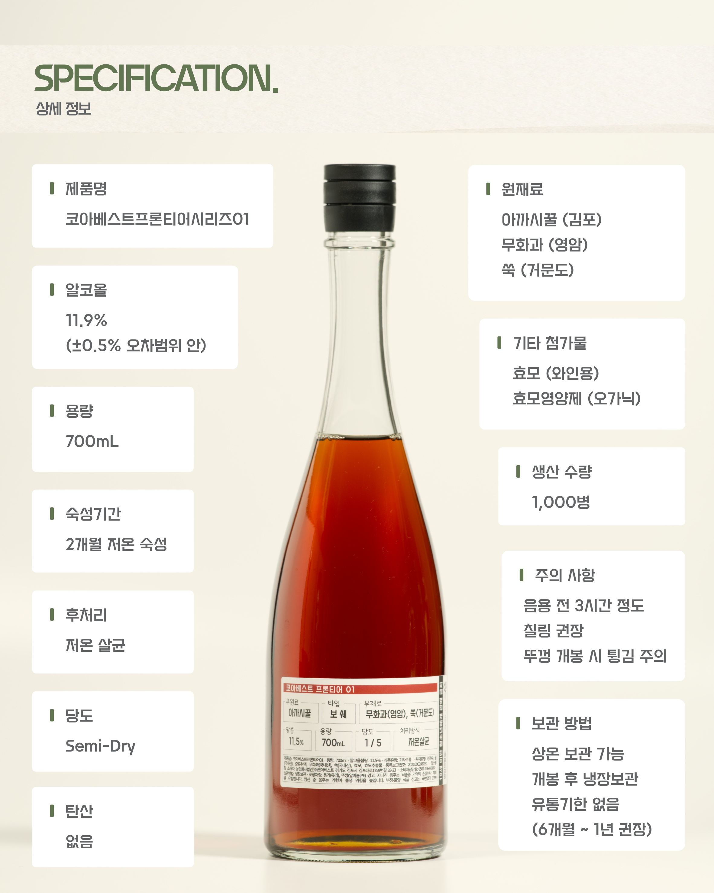 제조연월일 라벨 별도 표기 / 품질유지기한 병입일로부터 12개월 (서늘한곳에 보관)
